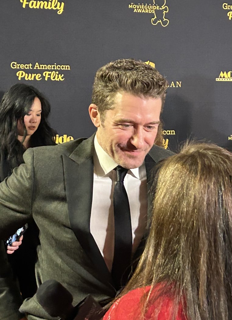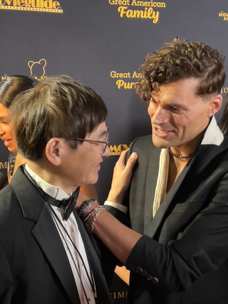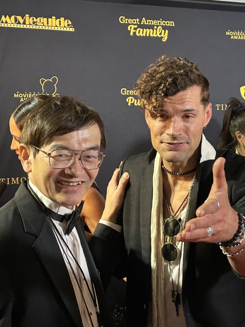 授賞式が終わり、デニス・クェイドさんが会場におられたので、今回ノミネートされた2023年の映画A Wing & A Prayer(信仰が曖昧ないクリスチャンだったのが、セスナ機に家族で乗っていたら、操縦士が急死して,飛行機を操縦せざるを得ななくなり、それを通して,はっきりと神様に対して信仰を持つようになった実在する男性をデニス・クェイドさんは演じていました。)の話と、