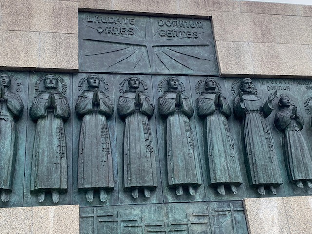 26聖人像 2024年2月5日撮影 2024年2月6日 12:11 / 真ん中に六人の宣教師。 右端で両手を広げているのが、バプチスタ神父。 左端の小柄が,ミゲルさん。その右が、ブランコ神父です。今回,このミゲルとブランコ神父の映像を 作り、映像祭に応募し,明日からハリウッドチームで、英語字幕版で,プロモーションを行います。 ペテロ窪田