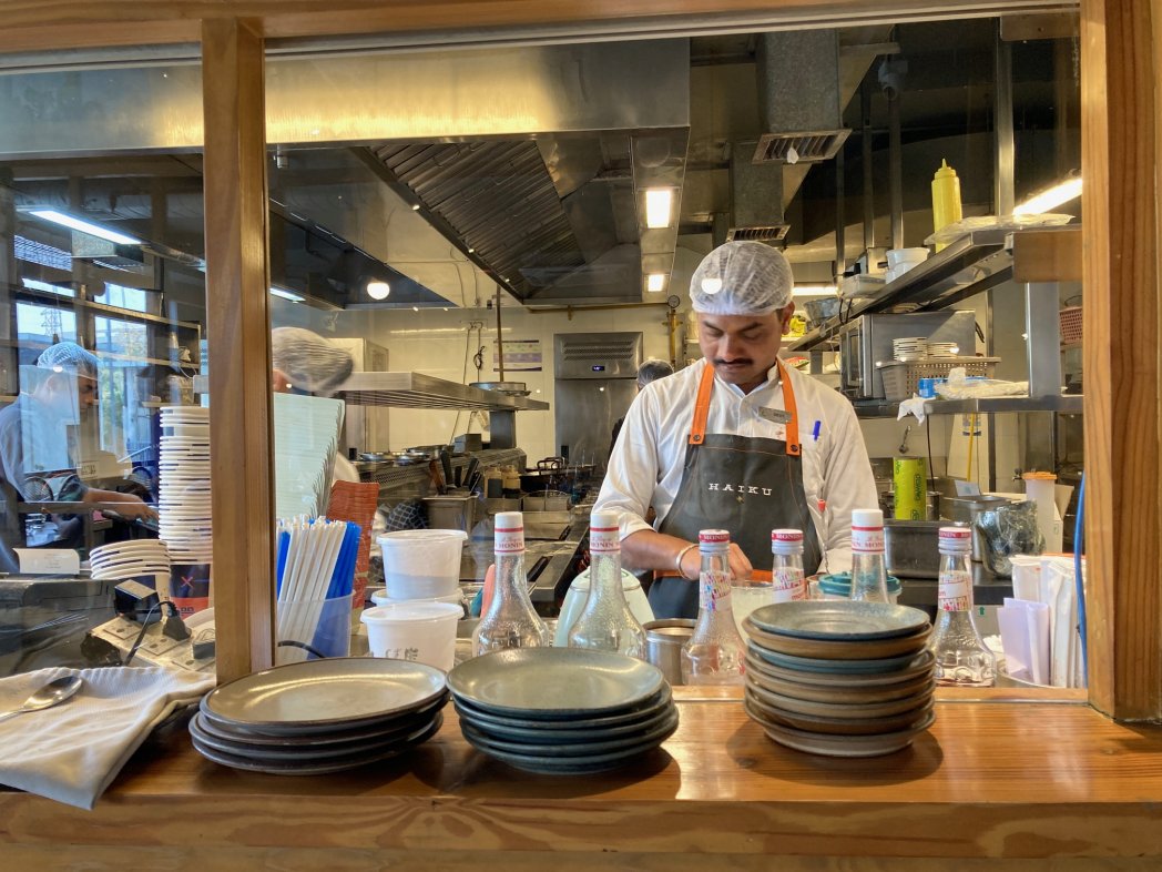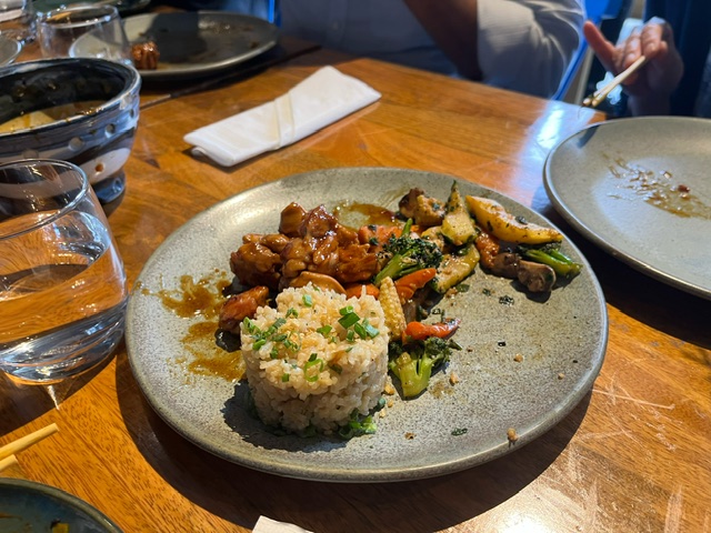 照り焼きチキンと野菜。どこかで食べたことがある味と思ったら、エバラ焼肉のタレの味みたいでした。