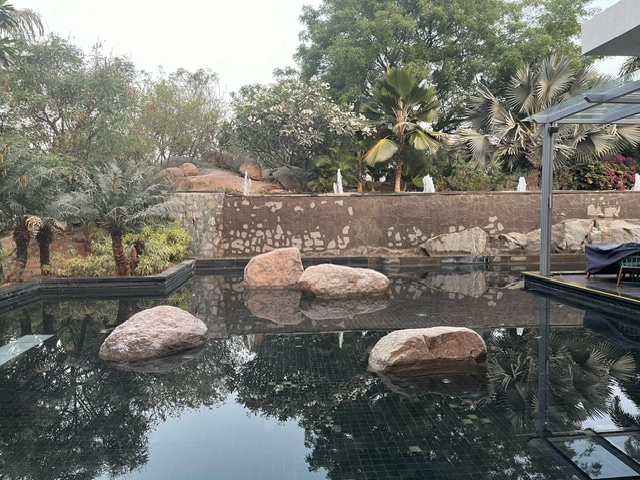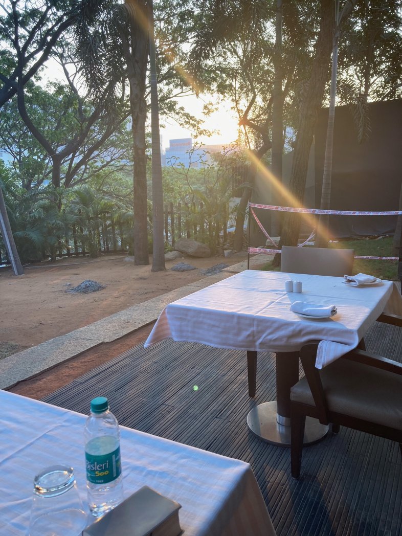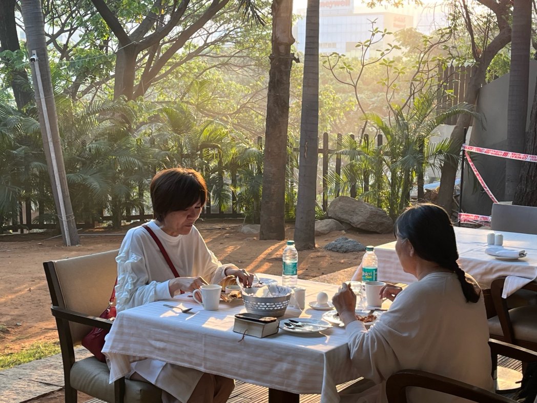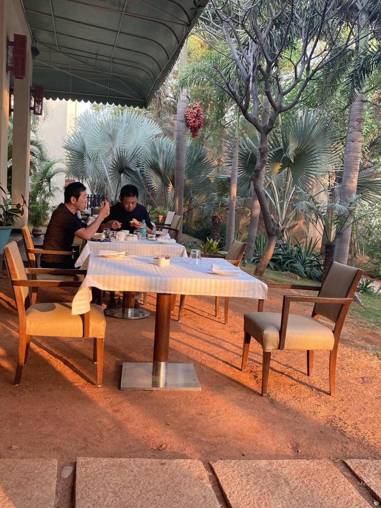 何とも恵まれた素敵な場所で朝ごはん。 内と外と座れます。 都会のホテル、素晴らしいサービスです。 全員元気です。感謝です。