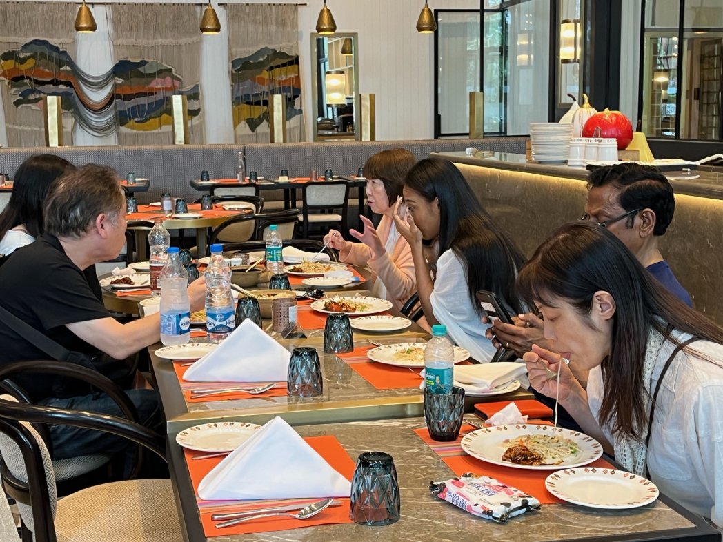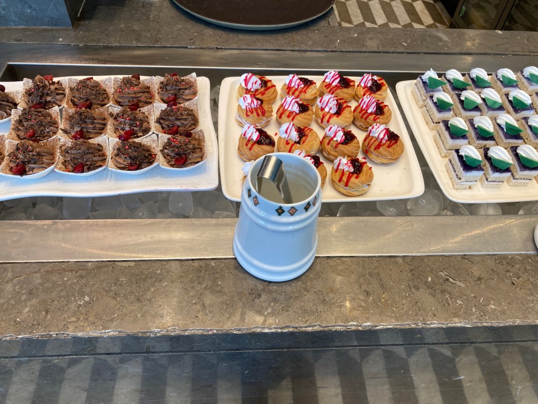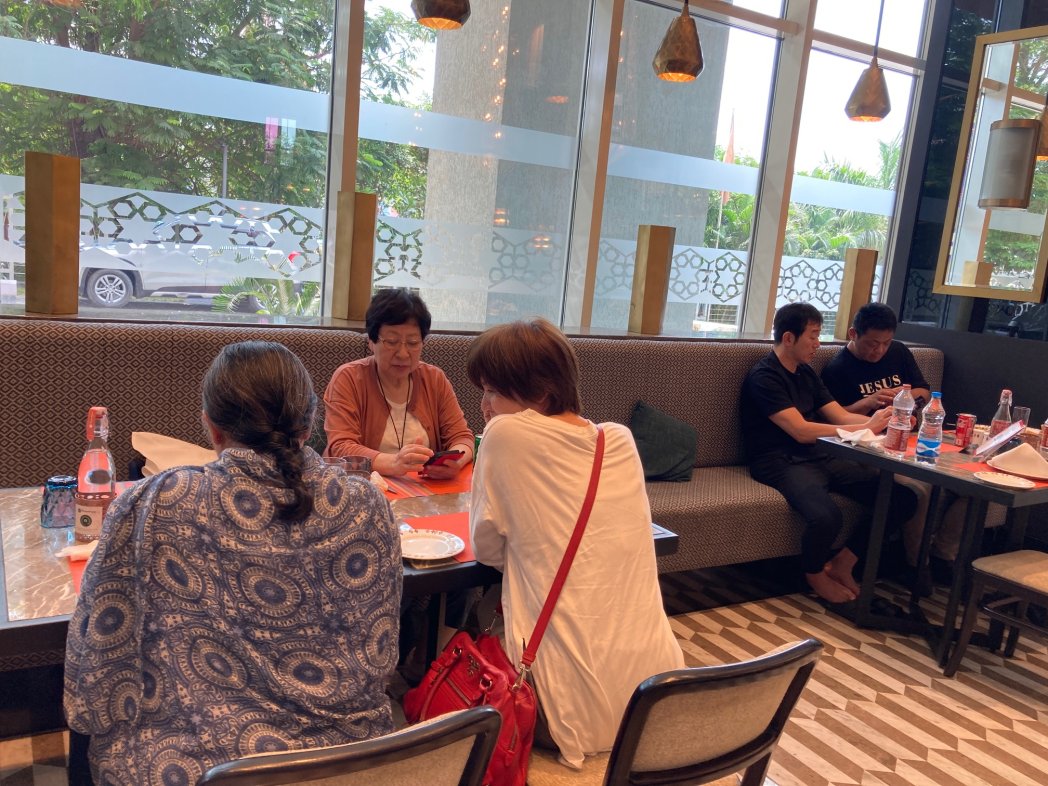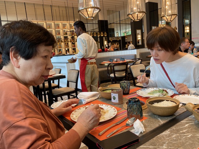 ホテルのレストランでランチ。 お食事に降りてくる人、だんだん少なくなってくるような….