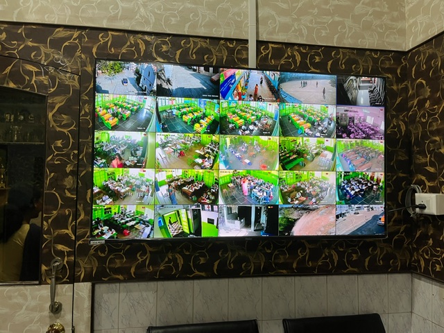 モニターで教室の様子を管理しています、日本では導入していないですね。 {CAPTION}