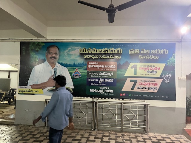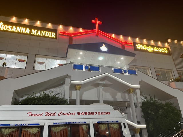 プレイバック:Mandir 教会 2024年3月12日 09:21 / 4日月曜日には、ホザナミニストリー系列の教会の中で急成長しているHosanna Mandir Vijayawada教会を見学に行きました。7000人収容できる会堂で、ラメッシュ牧師が牧会されています。YouTubeにもチャンネルが出ていました。日本チームはここで、夕食の交わりをし、賛美を一曲捧げました。