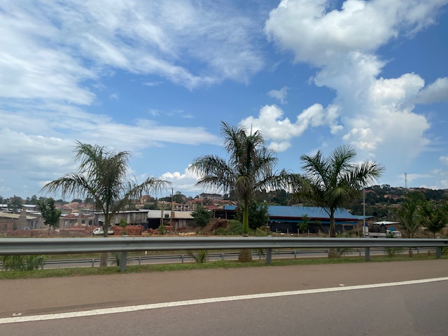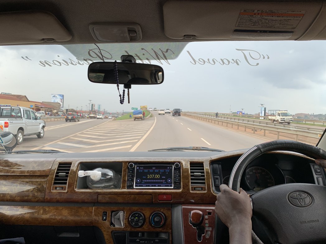 今走っている道路は日本が作ったそうです! 車もほとんどが日本車で、日本がウガンダ発展に貢献してるとのことです!