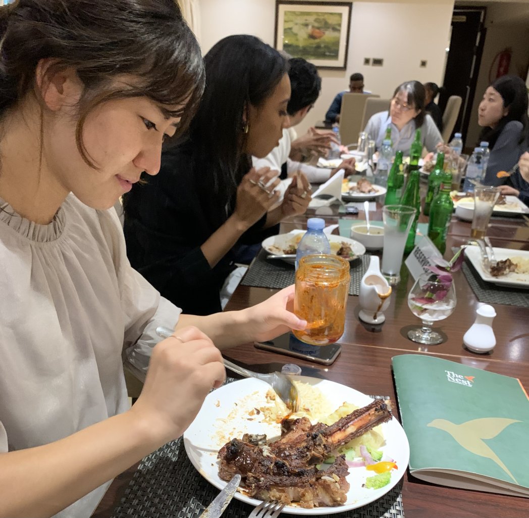 ホテル到着後、ちょっと遅めの夕食🍽️ ひとみさん、インドチームの方が持参したソースに挑戦! アチャー(美味しい)😆