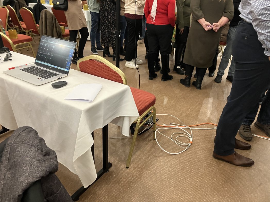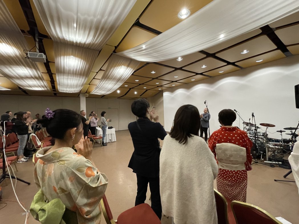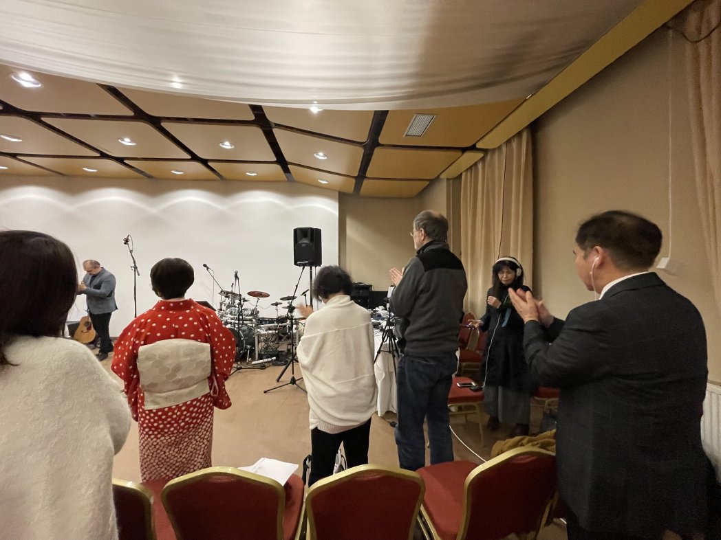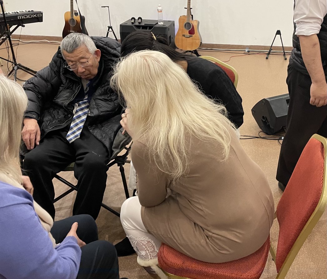 集会も終わり、ミニストリーのときです。 たくさんの方が秋元牧師の元に並んでいます。