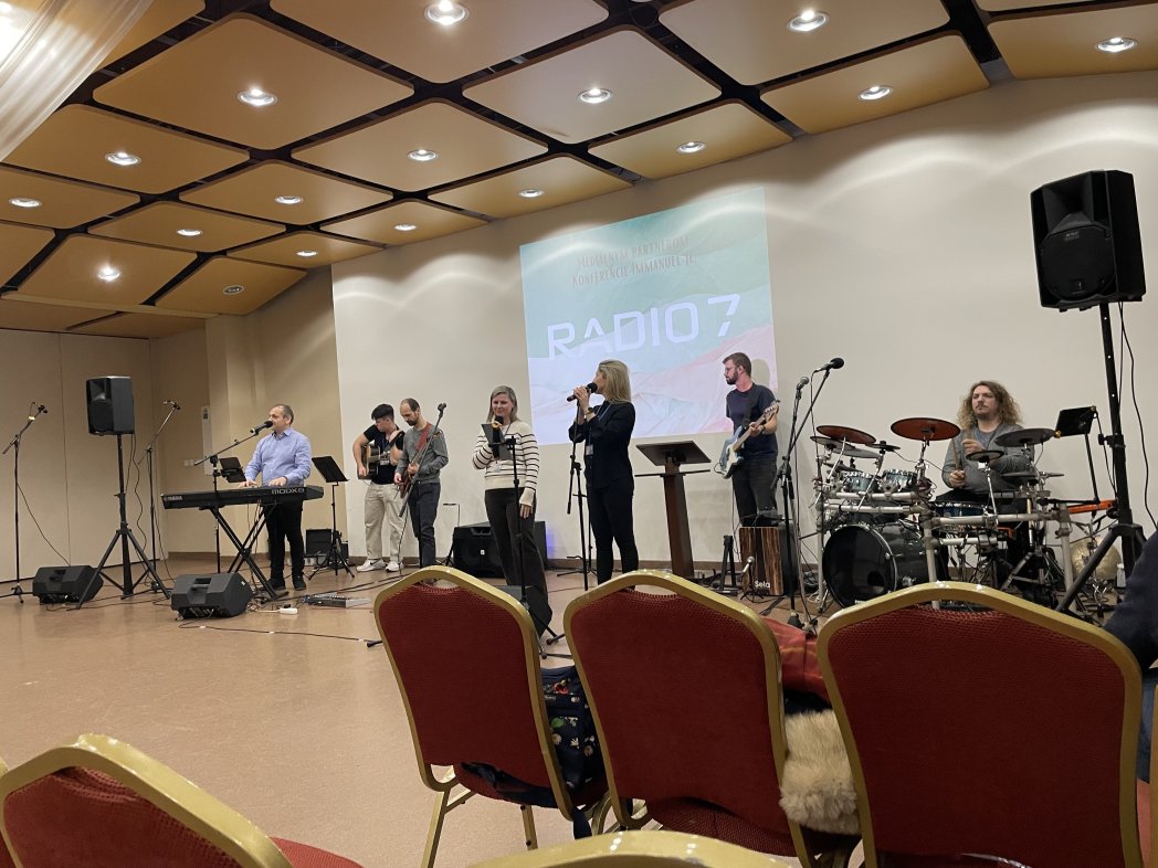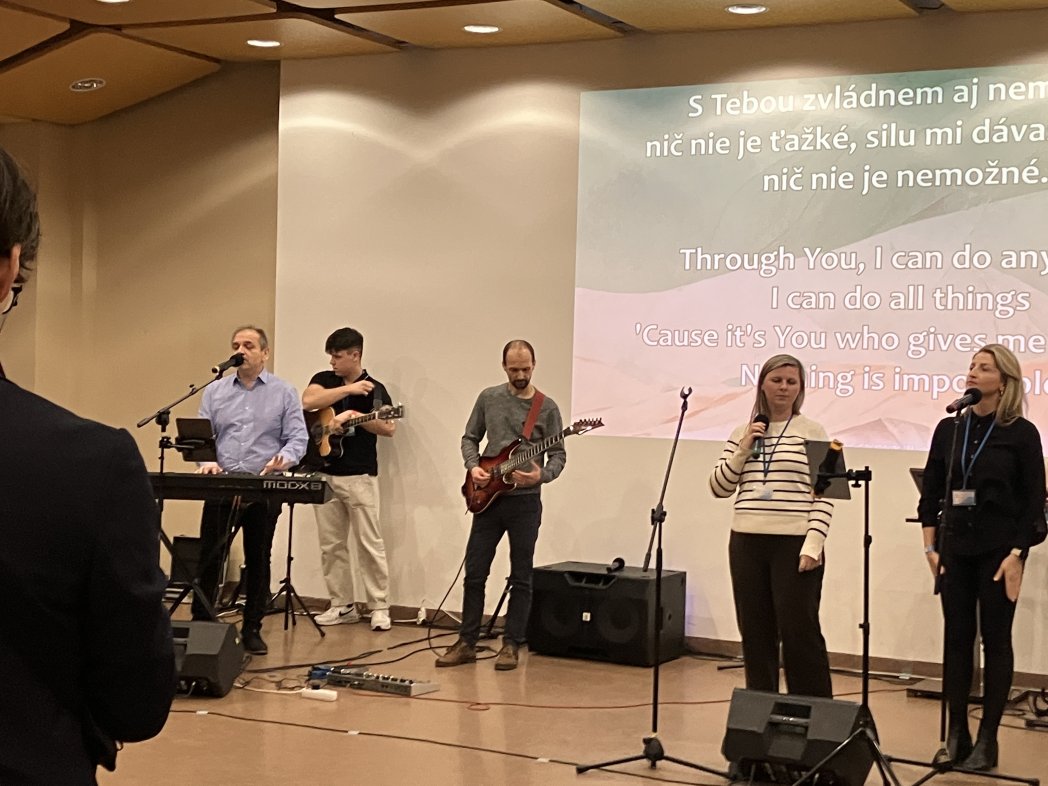 夜の部スタートです! ラド牧師がキーボードを弾きながら賛美を導きます!