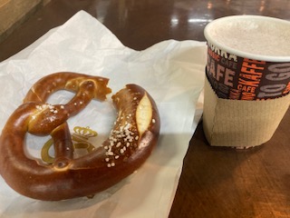 お腹が空いて…バケットサンドとシナモンロールを食べます(^^)