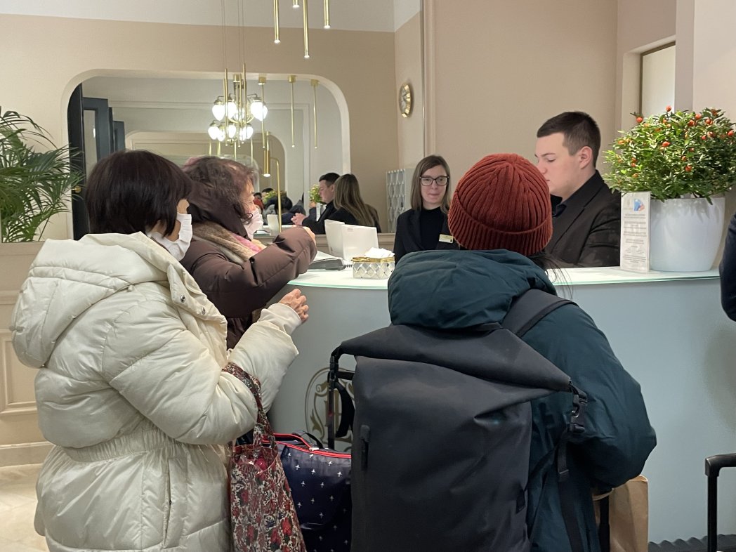 サリーさんが代表でチェックインの手続きをしてくださいます!