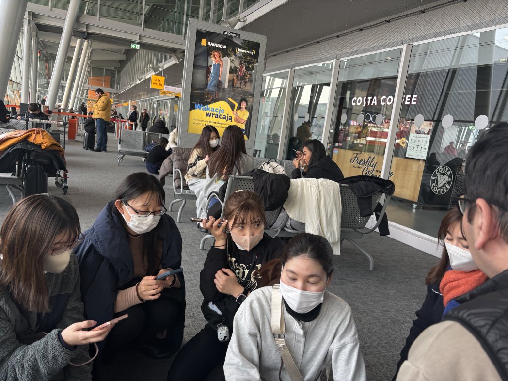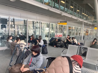 プラハ行き搭乗を待っています。