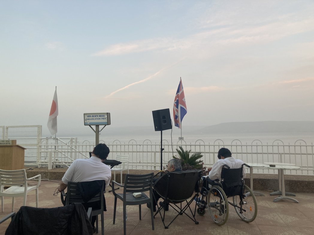 もうすぐ聖会が始まります。 少し風があって涼しいです。