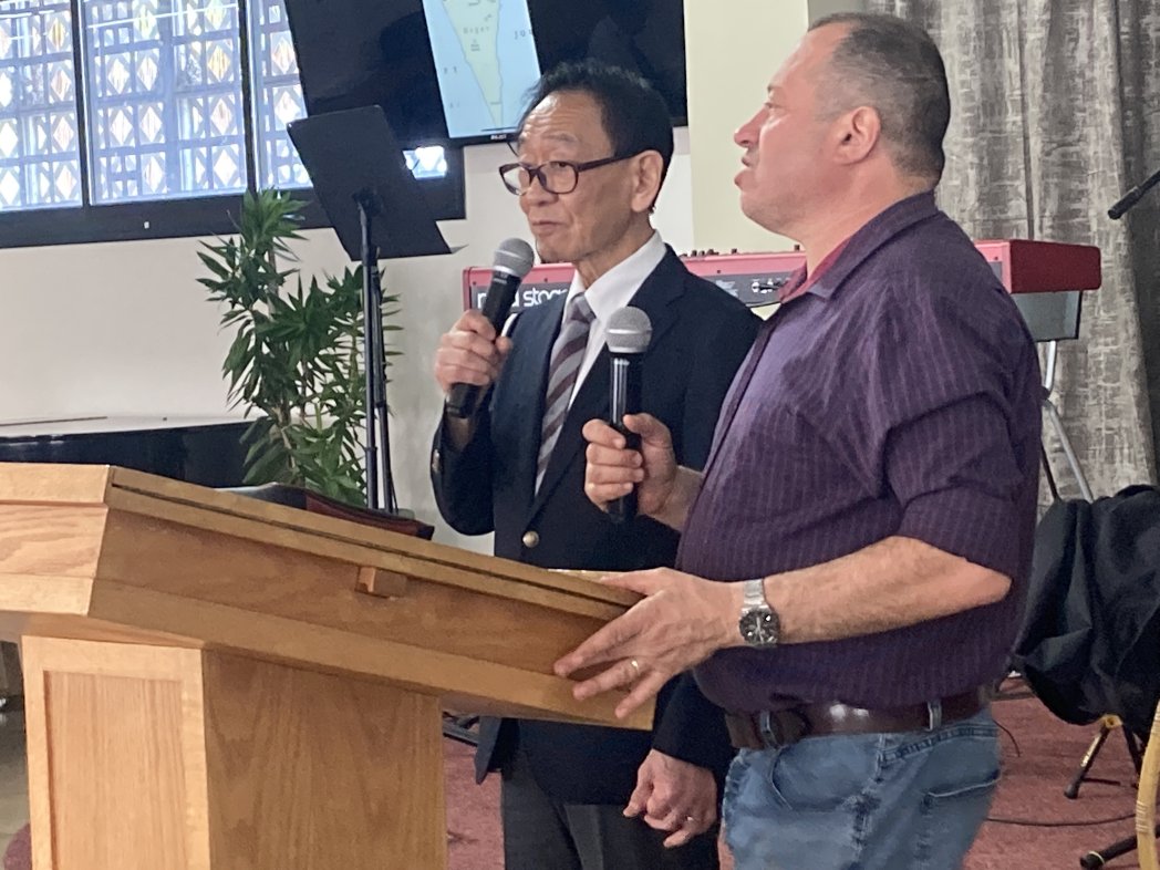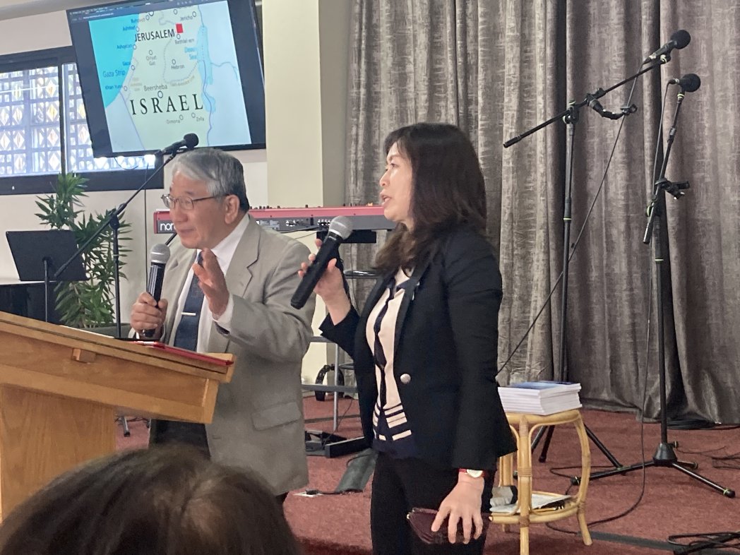 特別賛美We Stand with Israelを歌う前に、パウロ森さんが歌の説明をします。 歌詞を思い、イスラエルの平和を思い、心から賛美します。