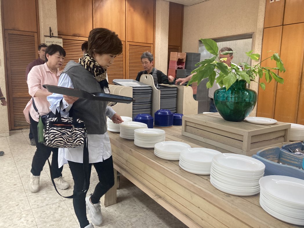 若い人もお年寄りも、障害を持つ方もみんなが等しく食べることができます。 容器に入れて持ち帰る方々も。 体に良い食べ物がたくさんのチョイスがあります。