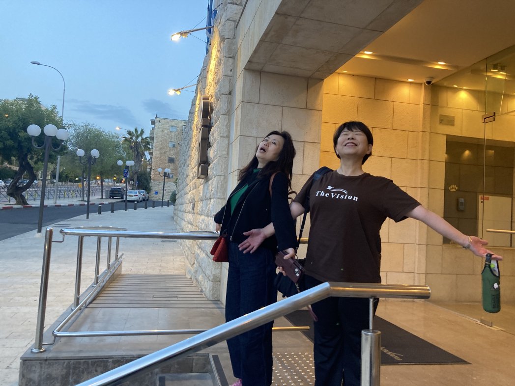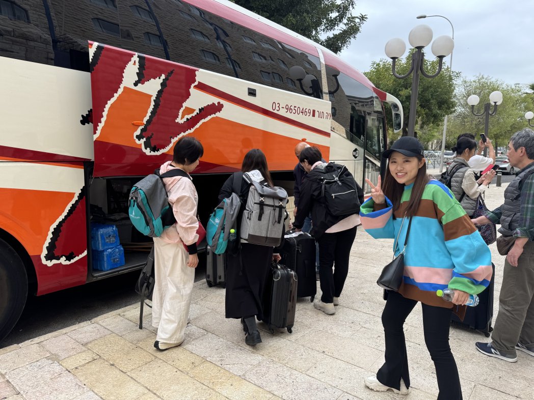 出発1時間以上前から、もうバスと車がホテル前に。感謝です。メギド経由でガリラヤへ向かいます。主が伴い守りを信じて。お祈りお願いします。ミサイルは迎撃システムで迎撃され、守られています。
