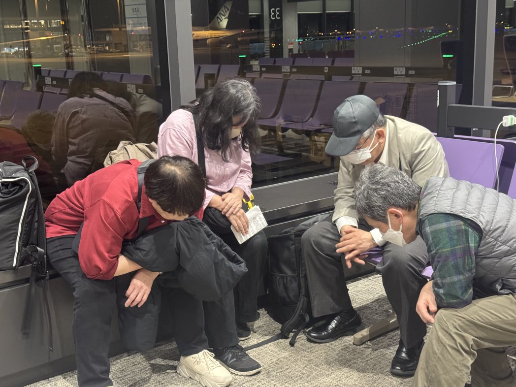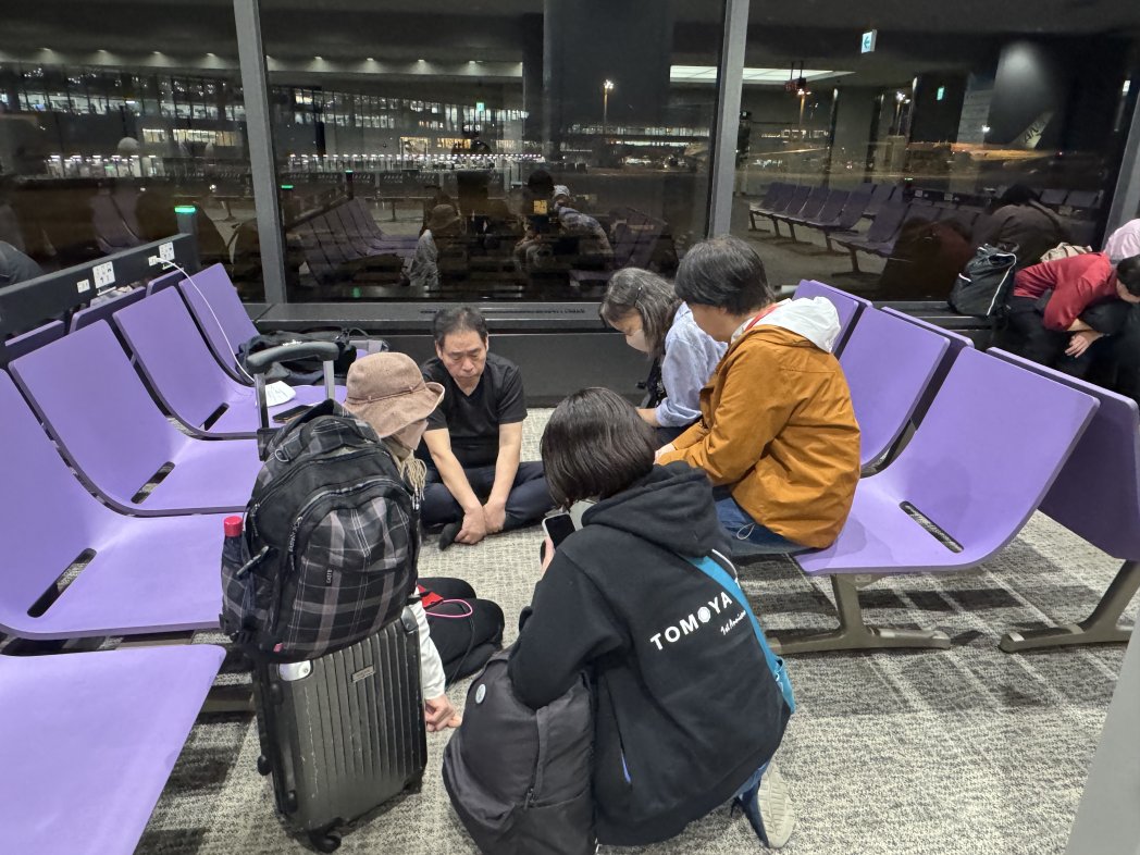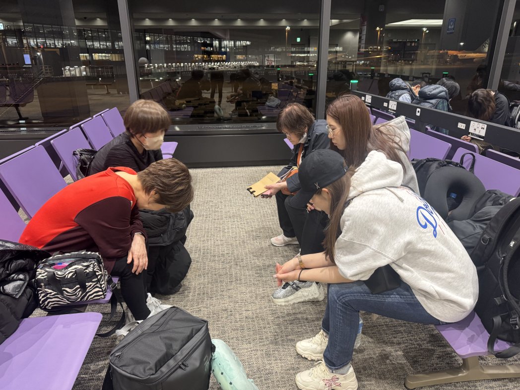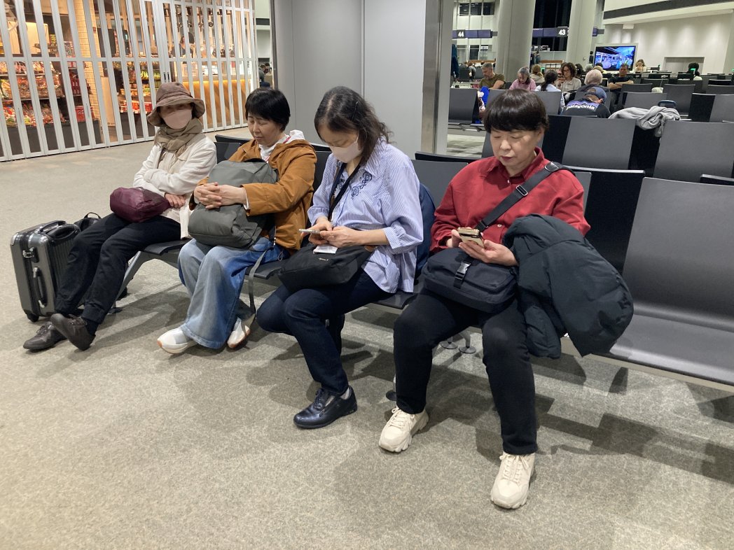 ゲートで一息、攻撃強い中、感謝し続けて、全員出国できました。
