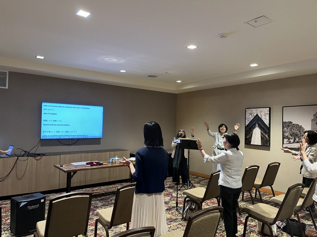 皆さんで、聖会に備えておられます。