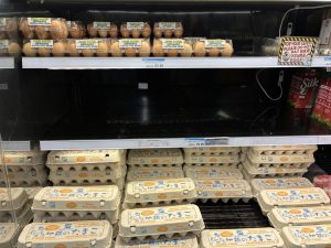 お昼をいただいたチャイニーズレストランの横。まるで日本のような広告。話に聞いていた通り高い卵を確かに見ました。