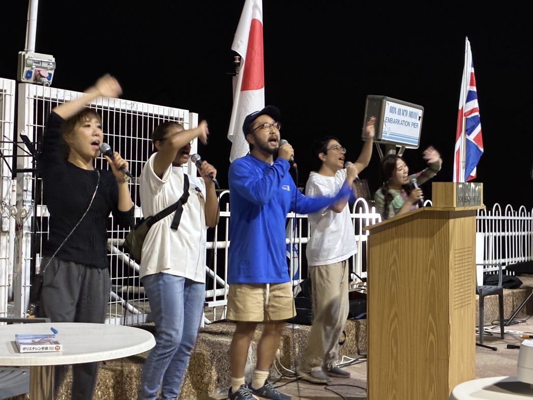 男性陣振森さんに合わせて手を振ってます。