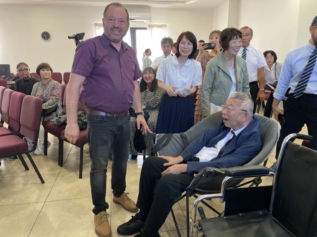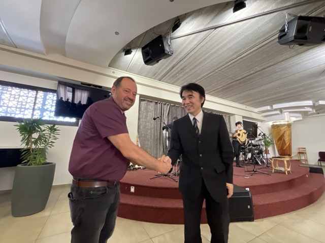 教会の方々お一人お一人に、挨拶される。