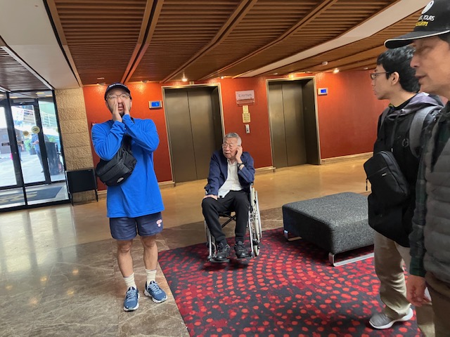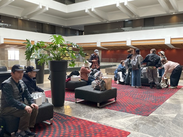 パウロ秋元さんが、お祈りをしてホテルを出発します。
