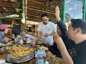 秋元さんは魚でなく、お肉に。 欲しい人?との声にはーい!