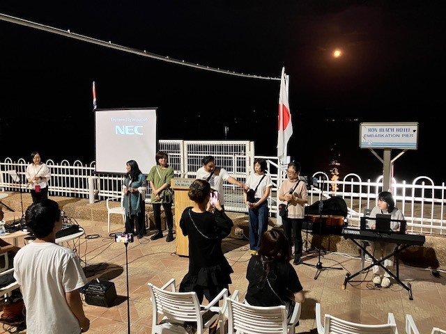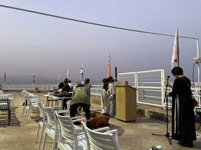 ガリラヤ湖にて最終日夕方。みなそれぞれに別れを惜しんでいます。帰国前ガリラヤ湖での最後の礼拝のため祈っています。