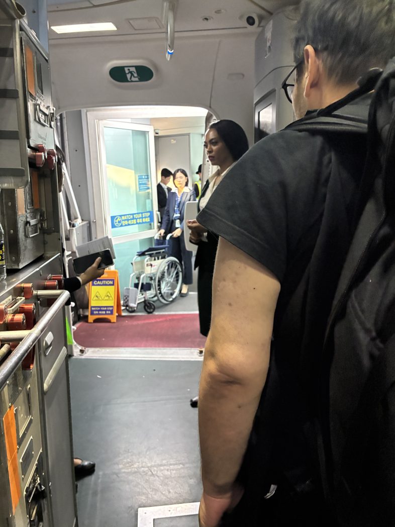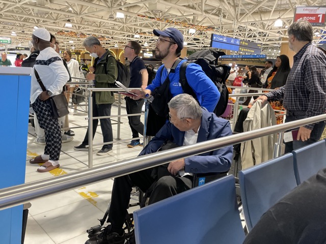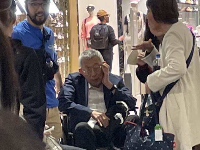 あまりスタッフがこないので、自分たちで出てきました。ラウンジへ行く前、腹ごしらえの秋元さん。 お元気です。