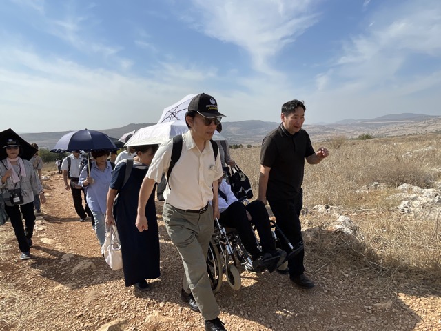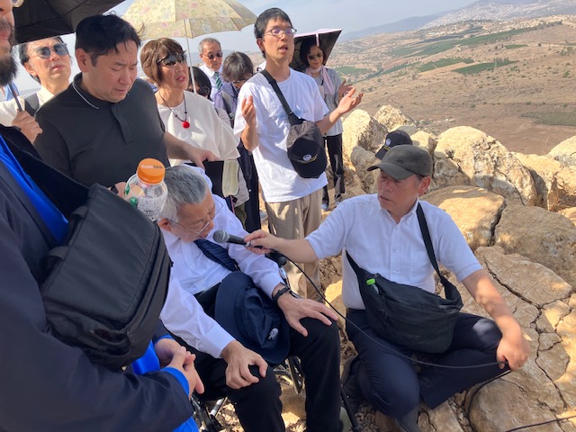 パウロ秋元さんが、お祈りして、バスは、アルベル山に出発しました。
