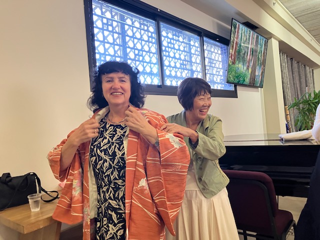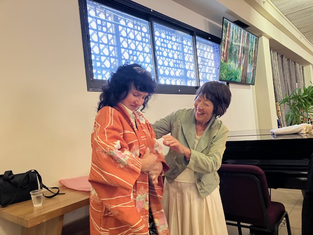 早速、日本からのプレゼントは、お着物、お喜びです。