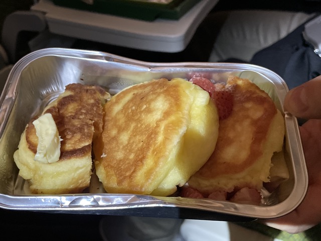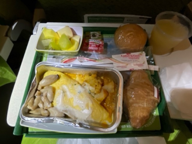 いよいよ、アジスアビバ空港に着く前の朝ごはんでした。上:オムレツ 下:パンケーキ
