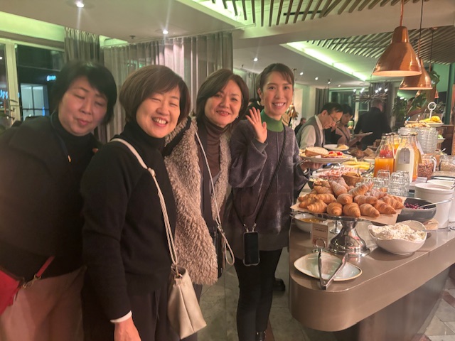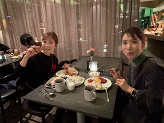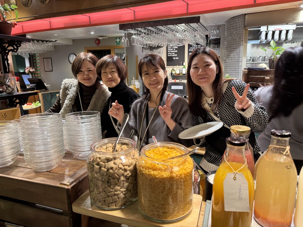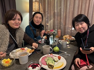 おはようございます! これから着付けと着付けサポートのため、ご自分のヘアセットを済ませて朝食中!