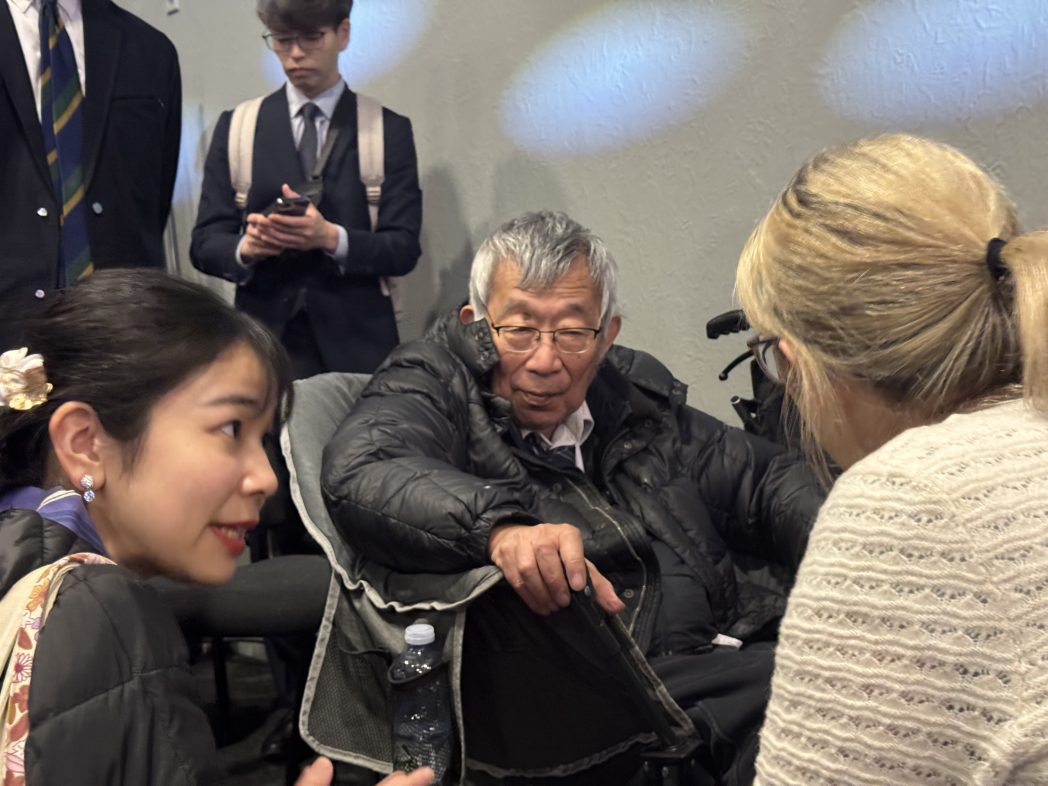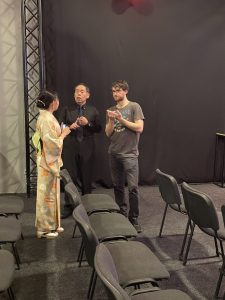 秋元さんとカリン牧師、集会前に挨拶とミーティングをされています。