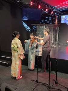 音響のしっかりした教会なので、ビオラ専用のマイクをつけてもらいます!