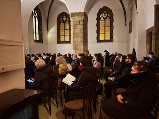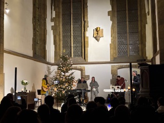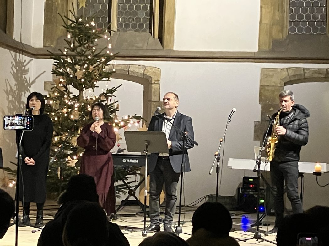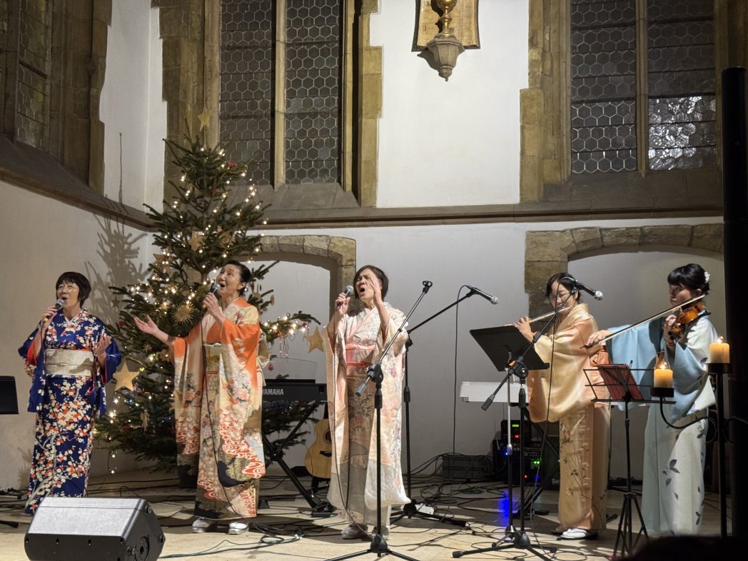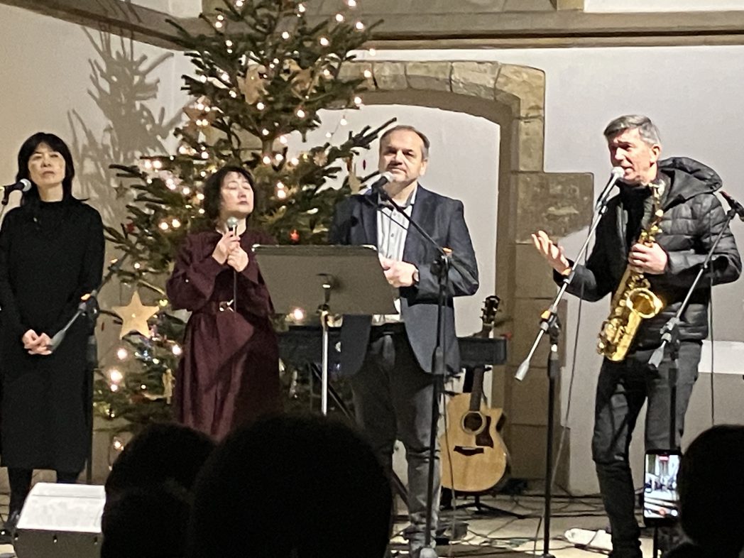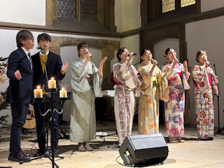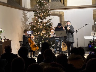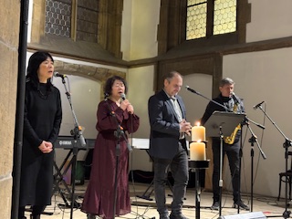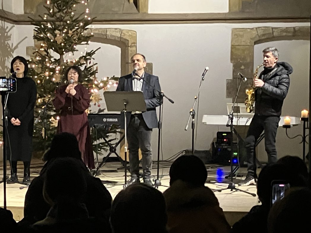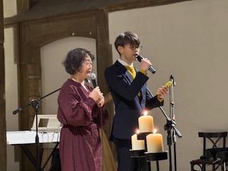 ピアノとチェロの演奏で、奥様が歌います。 プロフェッショナルです。