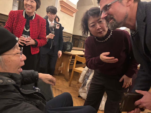 ダビデ牧師とご挨拶されています。一年振りの再会です。