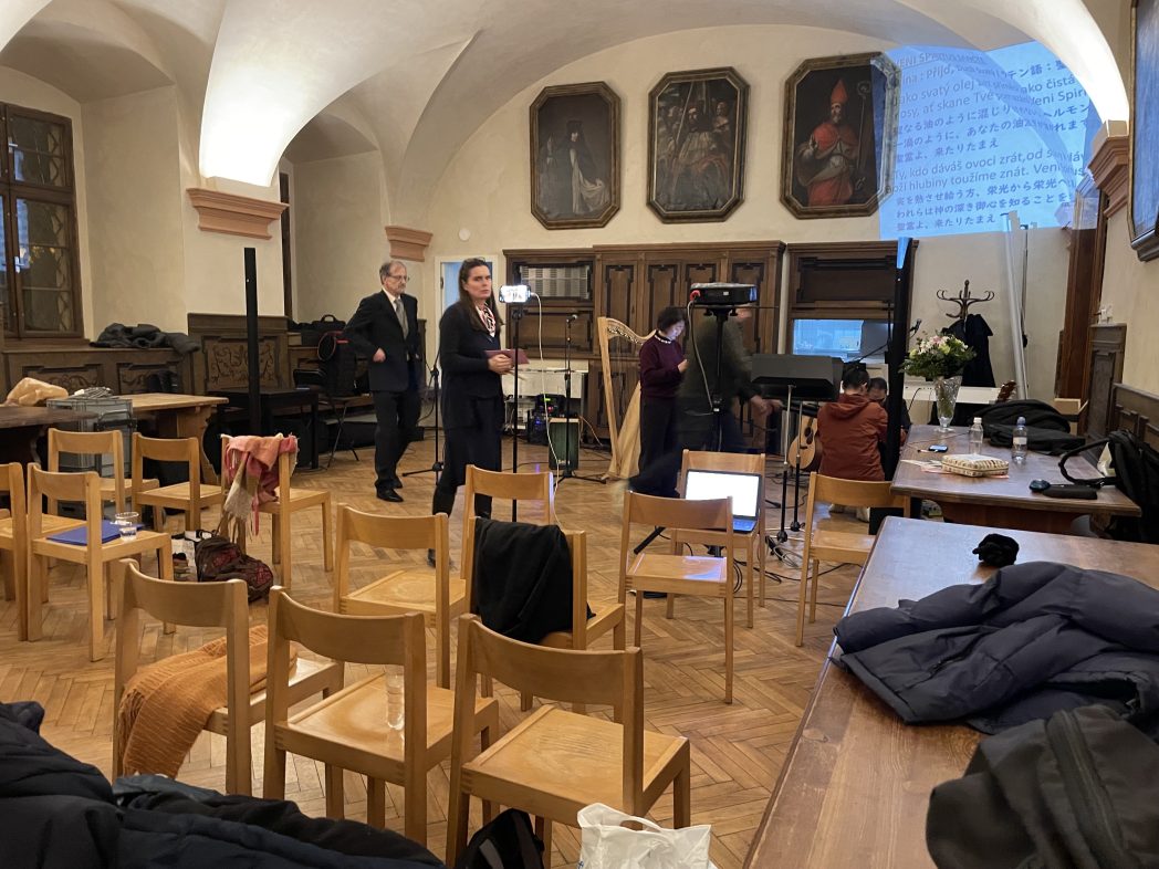 賛美グループのみなさん、お祈りして備えます。